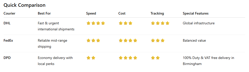 When sending packages to Bristol, choosing the right courier can make a big difference in cost, speed, tracking, and reliability. DHL, FedEx, and DPD are three trusted providers each with strengths depending on your needs: